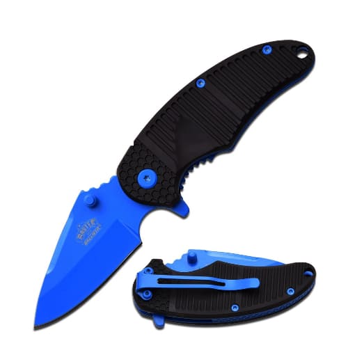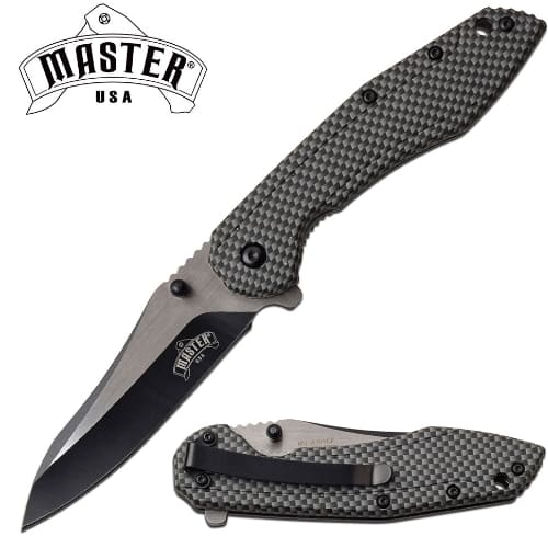 A spring-assisted knife, like many models in the Master USA catalog, requires the user to manually initiate the opening process—usually via a thumb stud or flipper tab—before the internal spring takes over to fully deploy the blade. In contrast, an automatic switchblade opens entirely with the press of a button or switch on the handle, a distinction that is often critical for legal compliance in various jurisdictions.